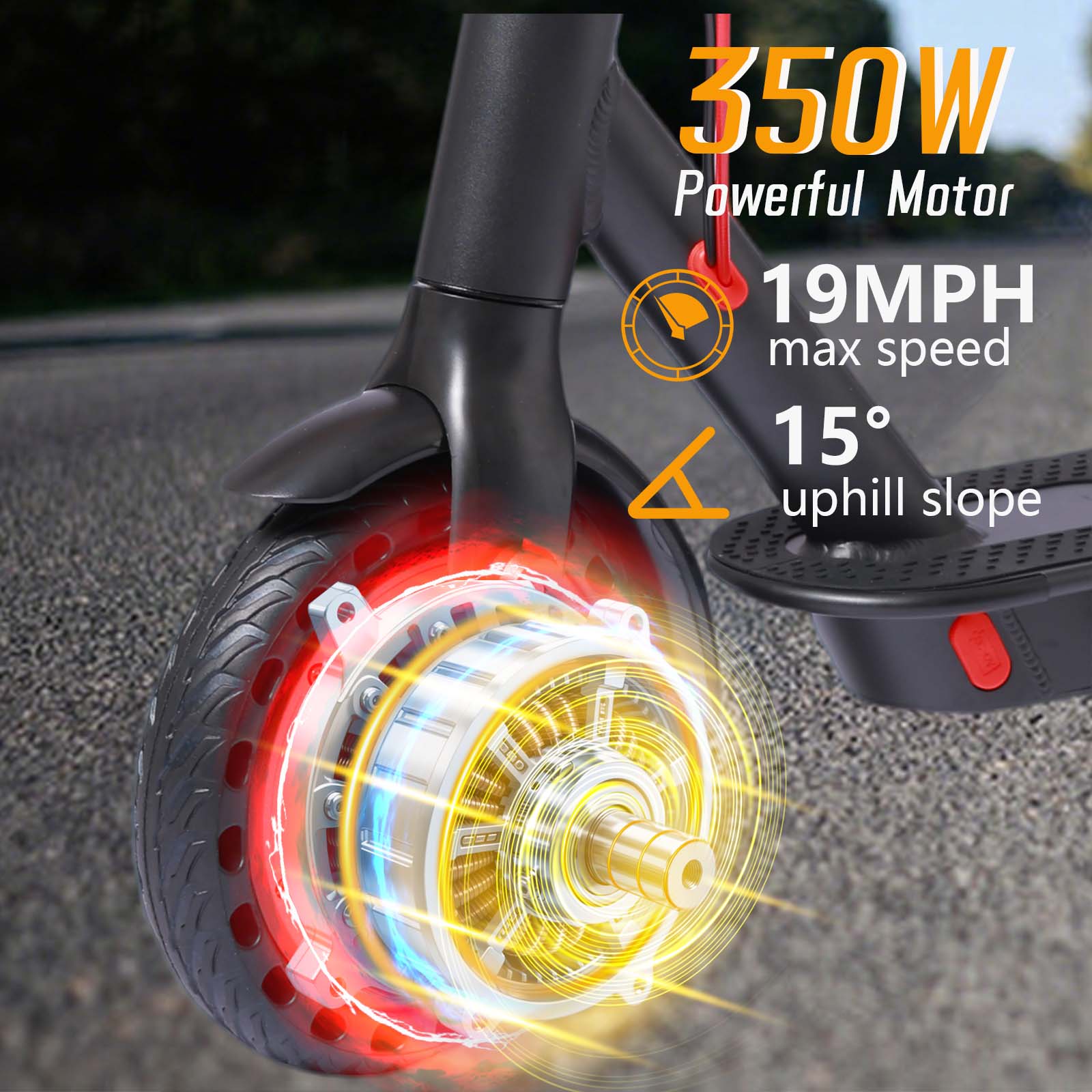 This electric scooter is truly amazing! The 8.5-inch solid tires provide a smooth and worry-free ride, and I’ve never had a flat. The powerful 350-watt motor allows me to easily reach speeds of 19-22 mph, making it perfect for daily commuting. The long-range battery (approximately 21-24 miles) is perfectly adequate for my needs. I also love its portability, easy folding, and the safety benefits of the dual brake system. Overall, this is a great scooter for adults who need reliable, convenient, and fun transportation!